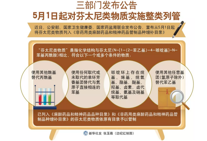 ◆公安部、国家卫生健康委、国家药监局联合发布公告,宣布5月1日起对芬太尼类物质实施整类列管。