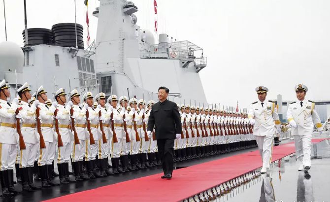 今天14时30分许,西宁舰抵达阅兵海域。中共中央总书记、国家主席、中央军委主席习近平登上检阅台,下达检阅开始命令。中国人民解放军海军32艘舰艇、39架战机,分别编为6个群、10个梯队,依次接受检阅。