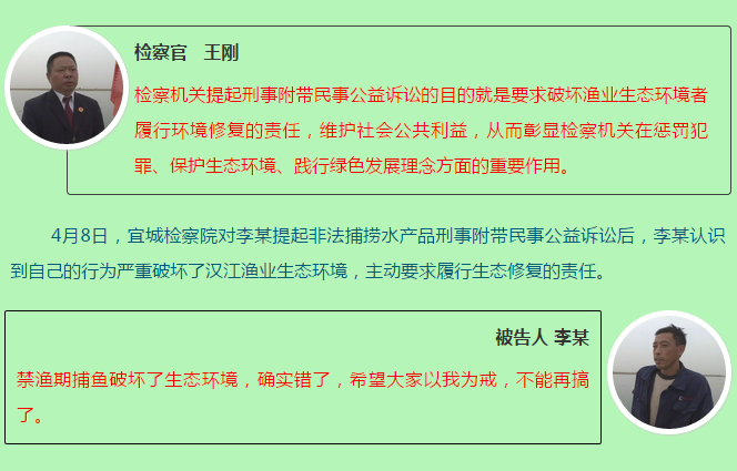 这起案件是宜城市首例刑事附带民事公益诉讼案件,也是宜城首例因非法捕捞水产品而提起的刑事附带民事公益诉讼案件。