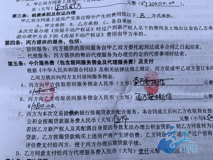 家友房产中介工作人员小赵说:“合同上写的目的是防止双方违约,实际以补充协议为准,因为我们中介费打折了,所以我们要写得明明白白,打官司用的。”