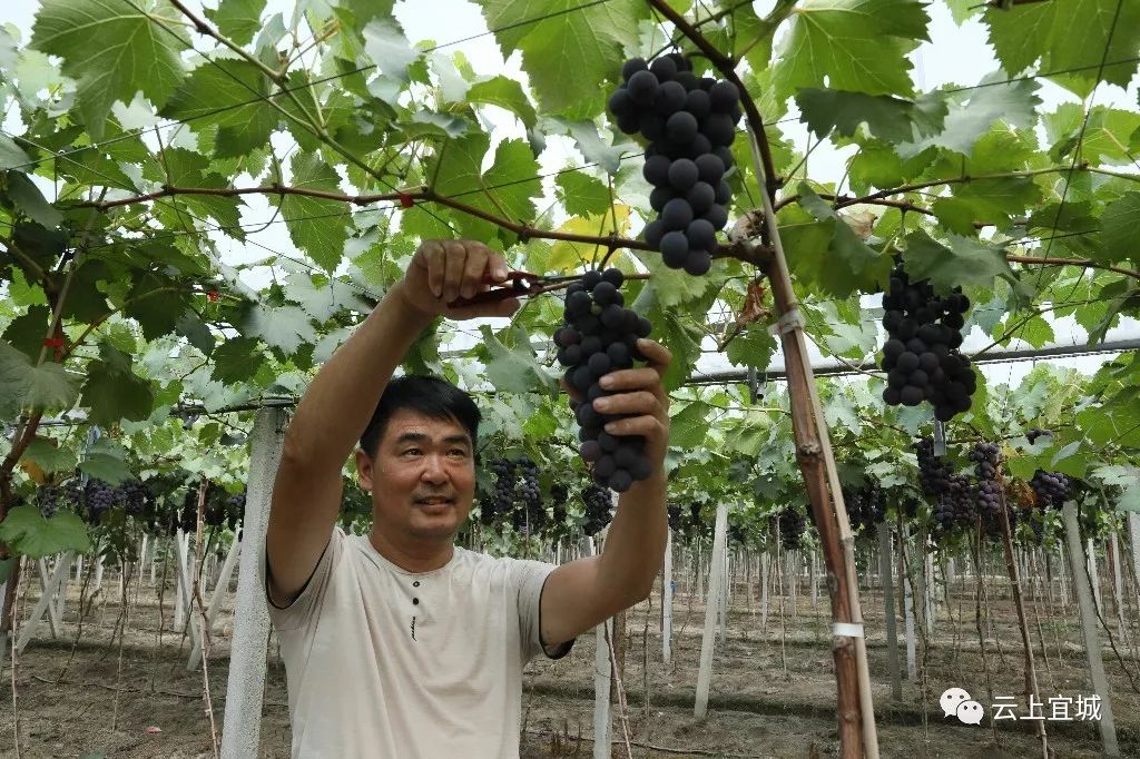 “宜城土壤、气候和浙江浦江差不多,首年葡萄产值约达每亩3000斤,非常不错。”黄民水信心满满地说,他计划再流转50亩农田,引进浦江的火龙果、桃形李等,增加品种,扩大规模。