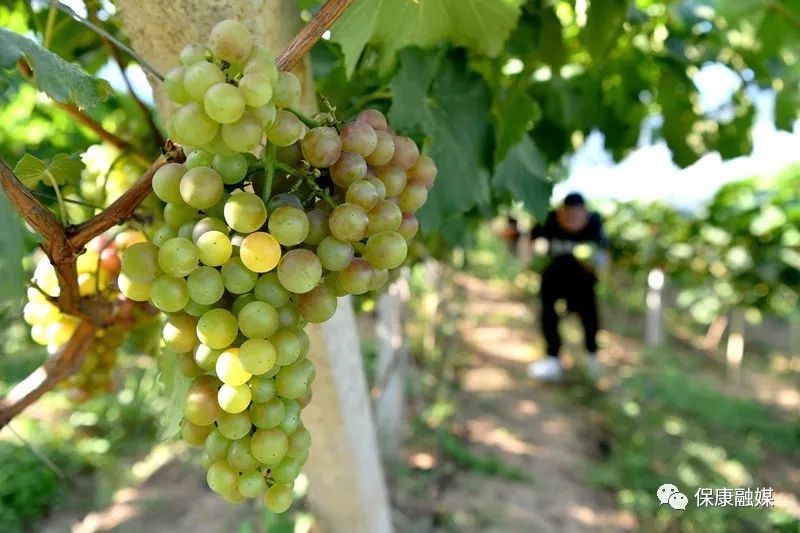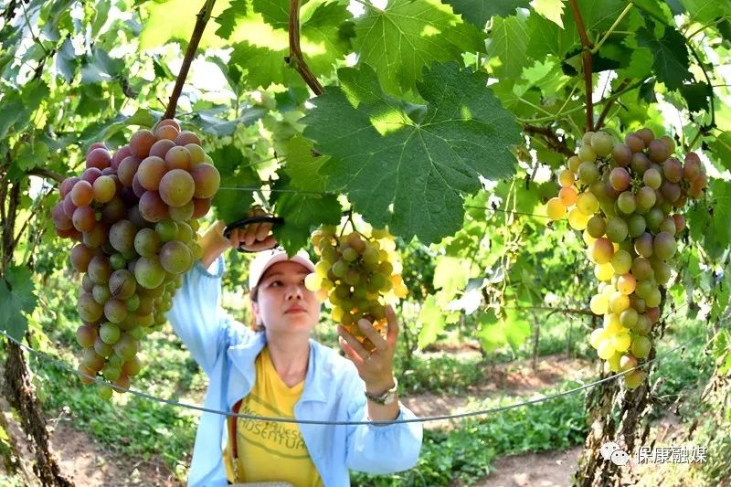 三五成群的游客,在葡萄园里边采边品尝,感受采摘的乐趣,享受丰收的满足,远离城市的喧嚣,体味田园的宁静。