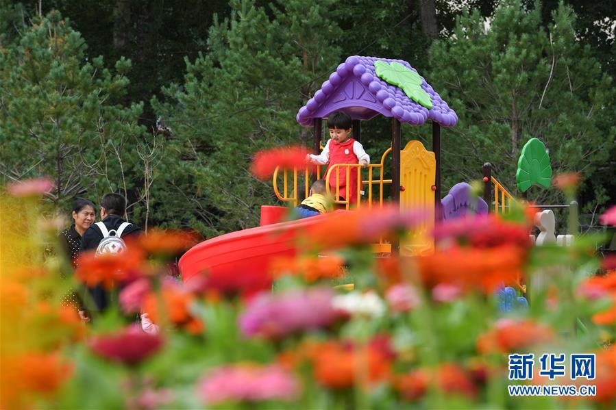 儿童在阿尔山市一处棚改集中安置点的广场上玩耍(8月12日摄)。新华社记者 刘磊 摄
