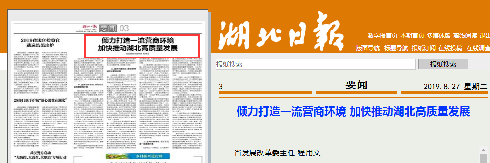 建设法治化、国际化、便利化的营商环境,事关湖北高质量发展,事关湖北在新时代区域竞争中的格局和地位,我们将以时不我待的精神、刀刃向内的勇气、善破难题的智慧,真抓实干、埋头苦干,推动优化营商环境取得更大成效,奋力迈进全国第一方阵,为谱写新时代湖北高质量发展新篇章奠定更加坚实基础。