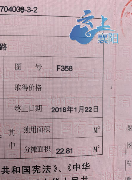 张女士告诉记者:“因为这个土地证到期了,18年1月份就到期。然后这是襄阳市第一批到期的 就是因为这个土地证到期,卖也卖不出去,没人敢买。”