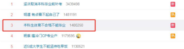 ◆ 日前,教育部在一份关于本科教育教学改革的文件中提到,不能达到《国家学生体质健康标准》合格要求者不能毕业。