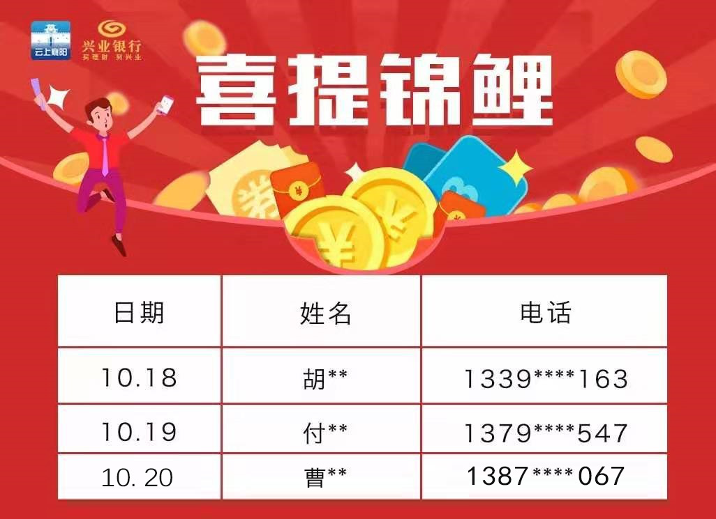 ◆打卡为襄马加油,4535元锦鲤大礼包等你来拿!吃喝玩乐样样有!第二天锦鲤大礼包已经产生,获奖者是曹**,电话号码1387****067。【打卡地址,幸运儿就是你】