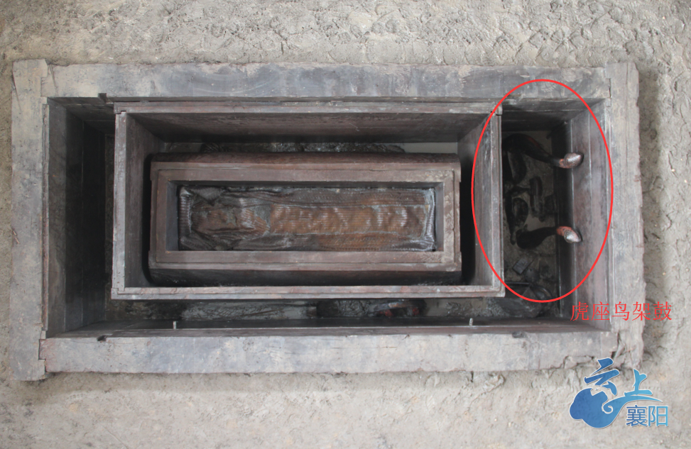 ◆襄阳高新区保存完整的东周墓葬群出土了多件国宝级文物,其中包括楚国贵族使用的乐器“瑟”和“虎座鸟架鼓”。
