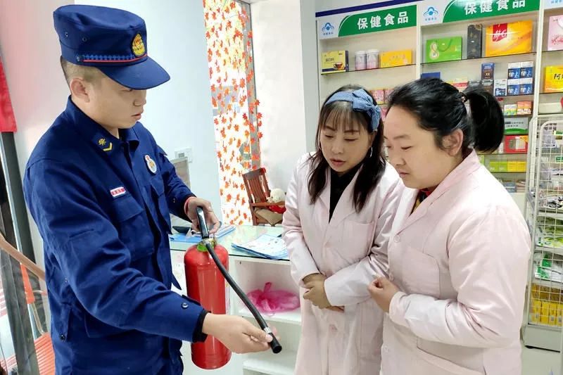 宣传人员向药店工作人员发放《消防常识二十条》消防宣传资料,并结合宣传资料上的内容向他们讲解了如何自查火灾隐患、火灾发生时如何正确拨打119报警、如何使用灭火器扑救初起火灾以及火场如何疏散逃生等消防安全知识。同时要求负责人定期检查店内火、电、气及设备、线路的安全,做到及时清扫杂物,将火灾隐患消除在萌芽状态。