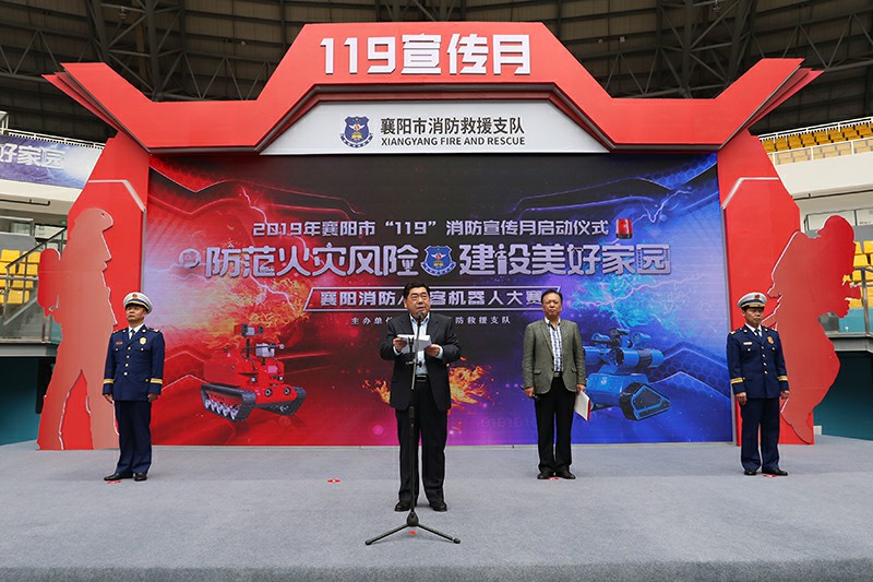 11月2日下午3时,支队在全民健身中心网球馆,举办了“119”消防宣传月启动仪式暨“防范火灾风险、建设美好家园”——消防创客机器人大赛,市政府副市长李德璋,市应急管理局局长贺晓东,市消防救援支队支队长马一兵、政委张高红等领导出席了启动仪式,并为获奖代表队颁奖。消防创客机器人大赛参赛代表队、亲友团,各级消防指战员、火灾高危单位、消防安全重点单位和新闻媒体记者代表2000余人参加了启动仪式。