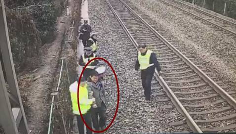 不论民警跟他如何沟通交流,男子就是不愿开口说话。担心发生意外,民警合力将男子从铁路上拉了下来,带回派出所。