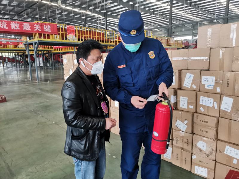 排查隐患助发展。大队监督员实地查看了物流快递公司的仓库及仓储货物;对仓库消防器材是否完整好用,消防设施是否运行正常,疏散通道、安全出口是否保持畅通,灭火及应急预案是否完善,消防安全责任制度是否落实,从业人员对火灾处理、人员疏散、消防设施操作程序是否熟练,收寄物品是否有涉嫌易燃易爆违禁品等情况也进行了详细了解。对检查中发现的安全隐患,当场发出限期整改通知书,并对从业人员进行消防安全教育,要求快递公司进一步规范安全工作,落实各项消防安全防范措施,切实提高从业人员的消防安全管理和防范水平。