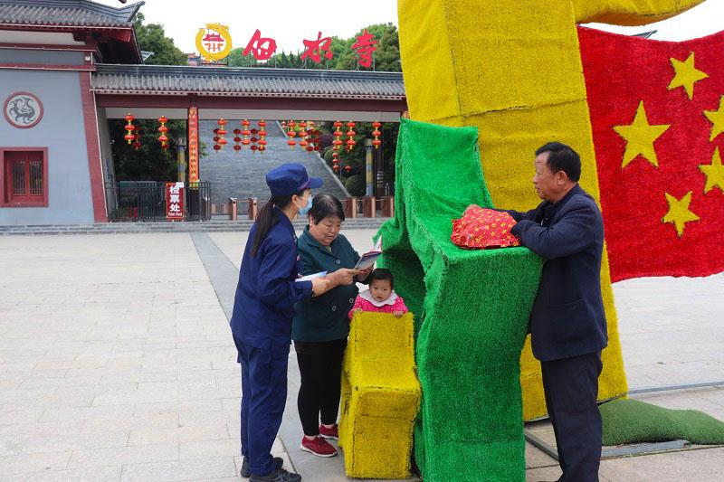 活动中,消防宣传员针对景区人流量大、人员复杂、植物繁茂等特点向景区工作人员、及游客发放了《灭火逃生手册》等宣传资料,讲解了灭火器的使用方法、火灾的预防以及应急逃生技能等消防安全知识,使游客们在尽心游览的同时紧绷防火安全弦,不违规用火、乱扔烟头,确保景区消防安全。同时叮嘱游客遇到火灾时要沉着、冷静,对发现的火灾隐患和消防安全违法行为及时拨打"96119"进行举报。。