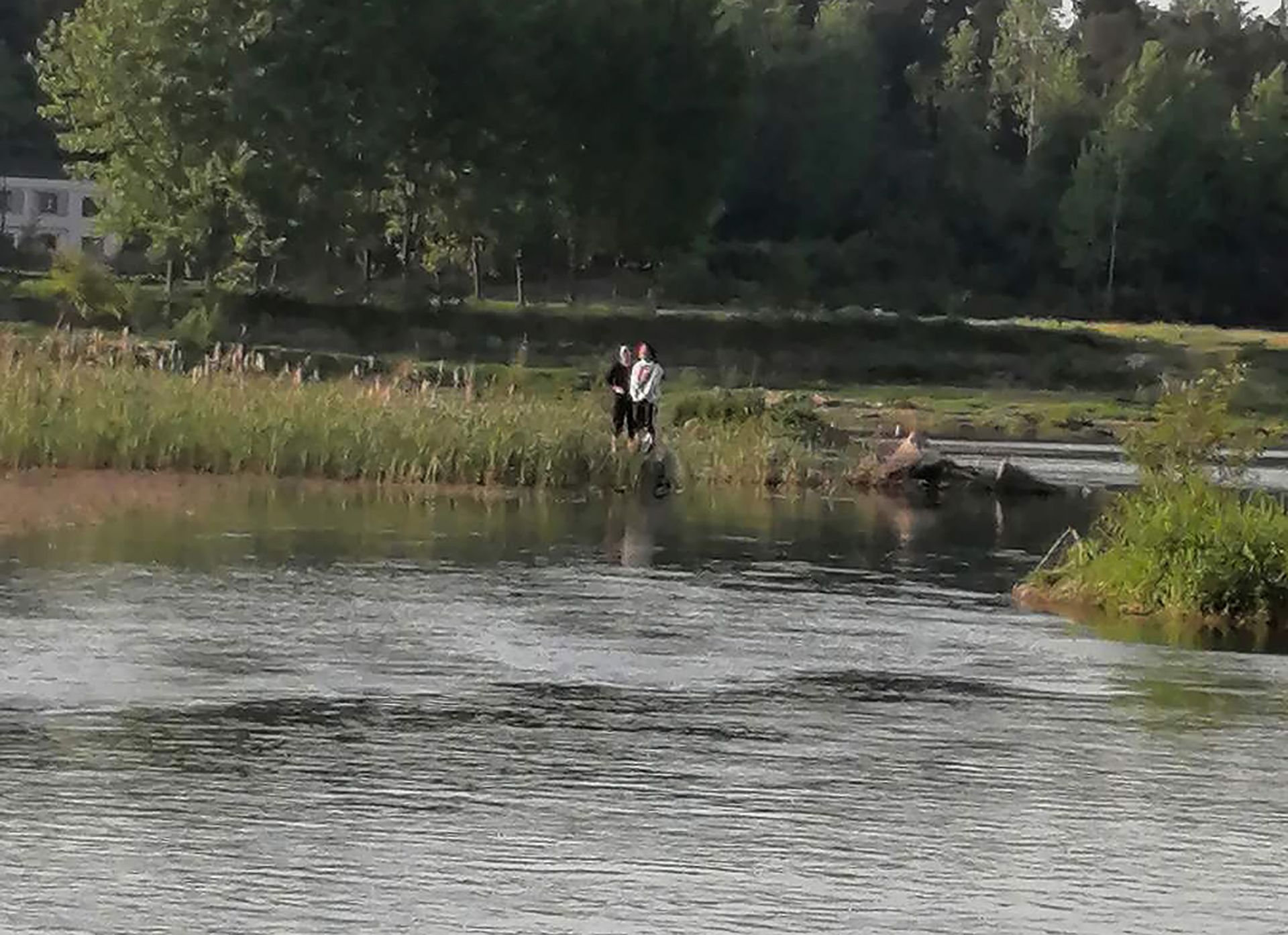 消防救援人员赶到现场后,经观察发现,母女俩位于一块距离岸边约40米的浅滩上,四周被河水包围,河流平稳,但临近夜晚气温在不断下降,如不及时救援可能有生命危险。消防救援人员一边快速准备救援装备,一边向河中被困的母女俩喊话,稳定母女俩的情绪。期间,消防队员找到在旁捕鱼的老人,希望借助老人的渔船前往浅滩处将被困的母女两人救出,老人果断答应。