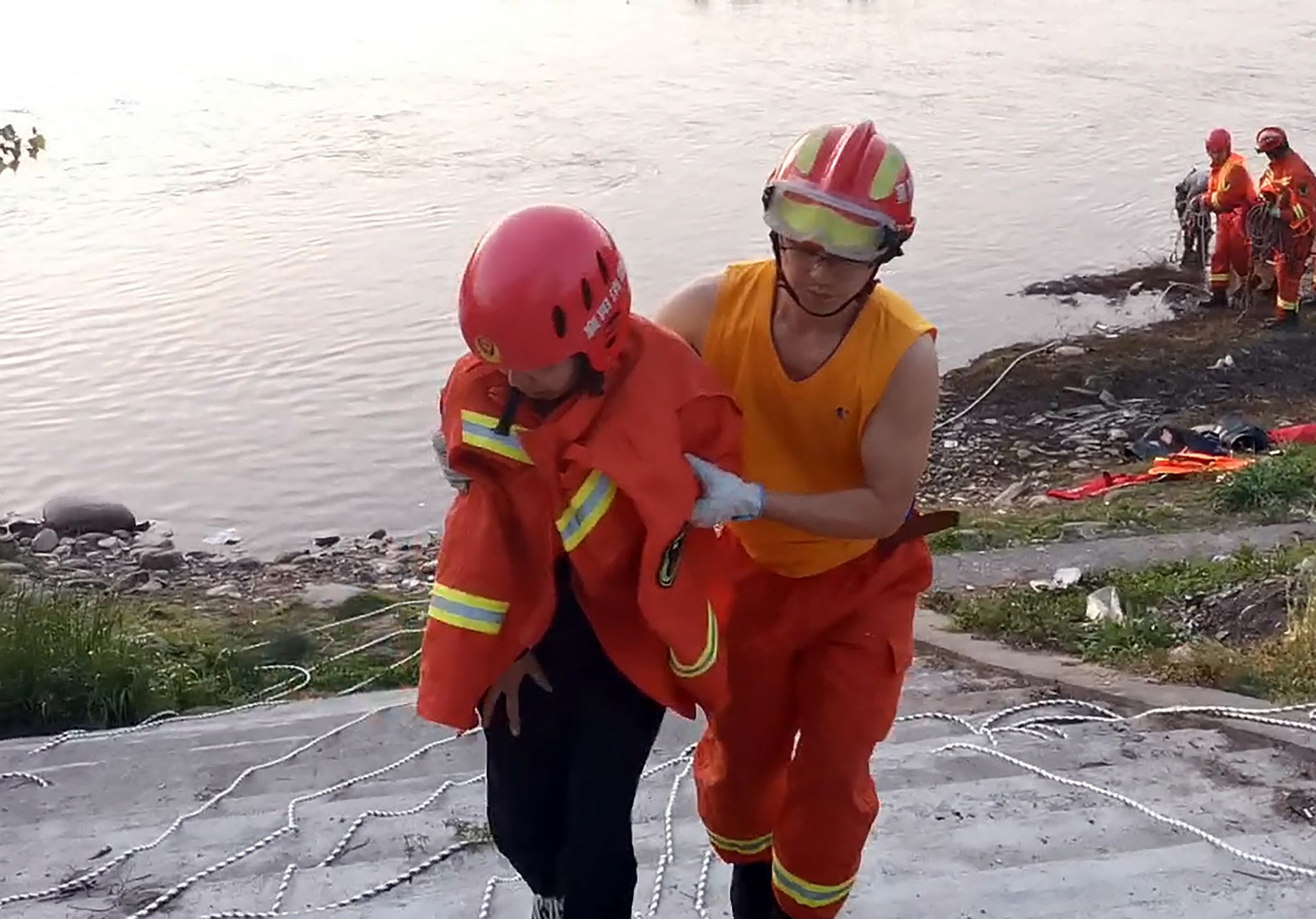 根据现场情况,指挥员立即制定救援方案,由水性较好的消防员丁航在做好个人防护后,携带救生衣、救生圈等救援装备乘坐老人的渔船前往浅滩展开救援,岸上的消防队员分两组牵引保护绳索,随时观察水情变化。到达浅滩后,消防员丁航迅速为母女两人穿上救生衣并做好绳索保护,乘船往返两趟将母女两人救上岸。上岸后,看着母女两人瑟瑟发抖,消防队员主动将自己的衣服披在母女两人身上御寒,并驾驶车辆将母女两人送回家中。