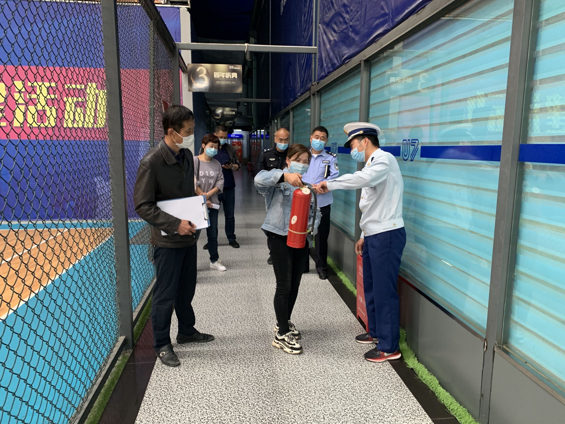 5月8日上午,樊城大队派员联合区文旅局副局长魏燕敏、柿铺派出所副所长李光定和王伙社区副主任姚启荣,对辖区优柒体育文化运动场馆进行消防安全大检查,全力服务企业复工复市。
