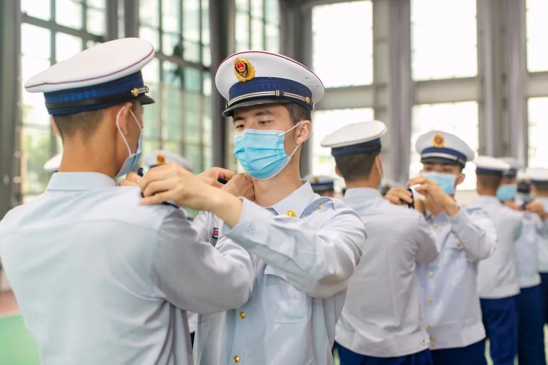 经过长达一年的封闭式学习、专业化教育、实战化训练,最终经过严格考核,一批热爱消防事业,具有职业认同感,同时拥有强健体魄的“准消防员”被光荣授予消防救援衔,正式入列“火焰蓝”。