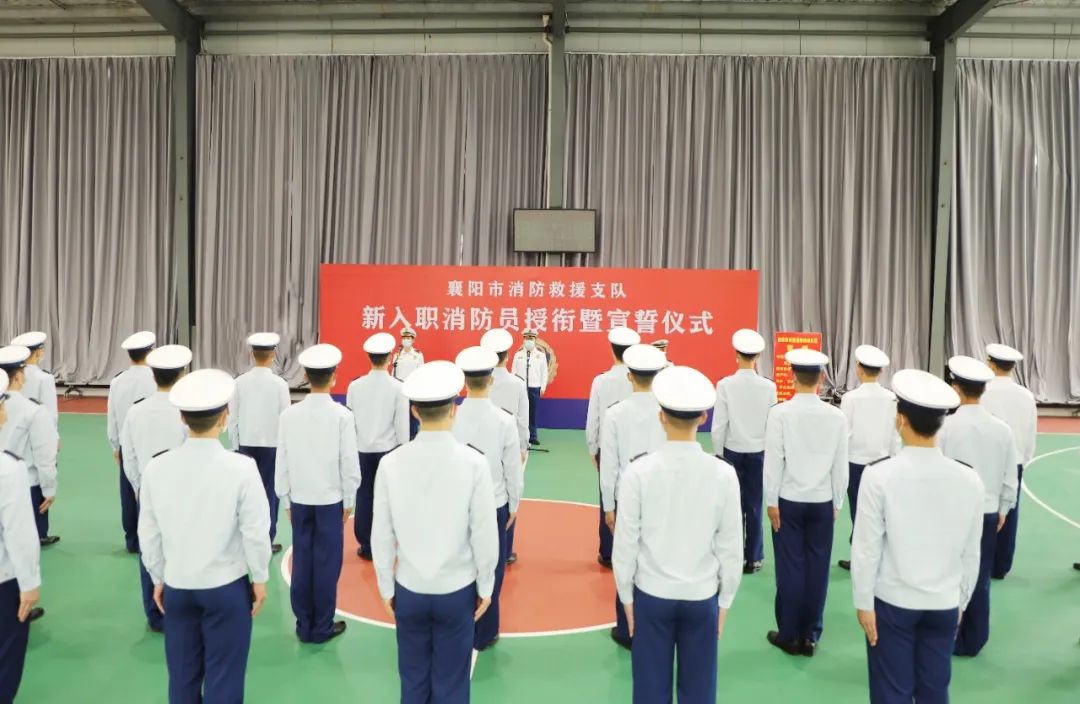 5月8日,襄阳市消防救援支队举行首批新招录消防员授衔暨宣誓仪式。政治委员方文连出席仪式并讲话,支队部分在家党委委员、大队主官以及23名新消防员参加仪式。