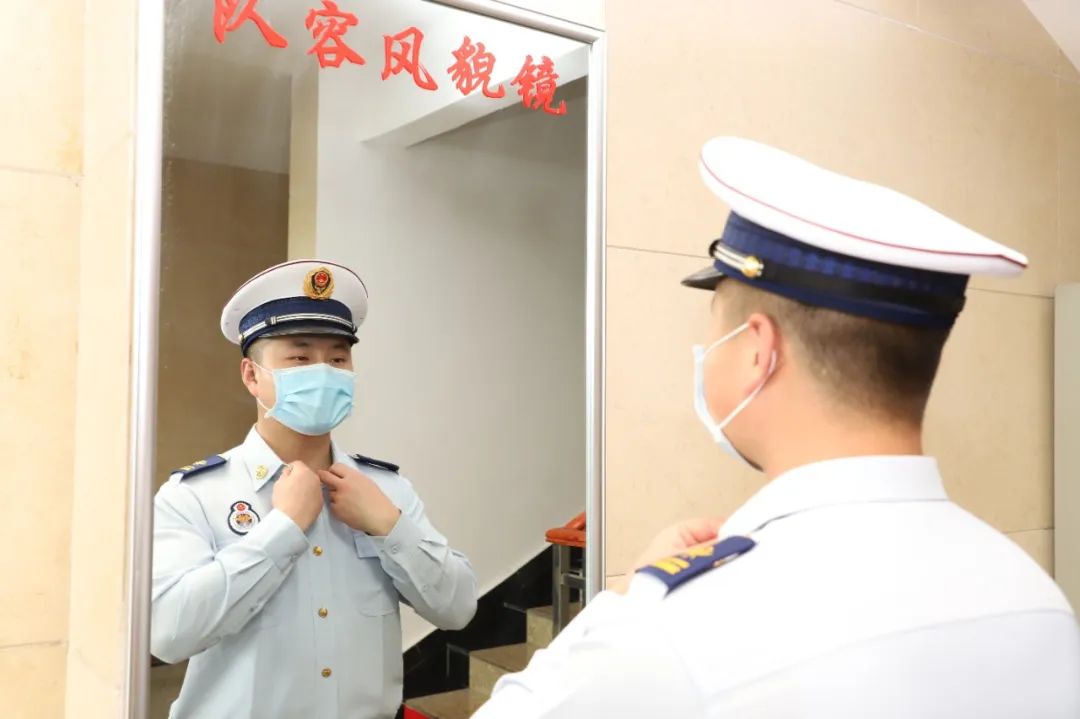 在现场,新消防员们满怀激动与喜悦,互戴肩章、互整衣装,享受着消防职业生涯中第一份荣光。火样的青春、火红记忆,佩戴崭新的火焰蓝肩章的新消防员们即将踏上新的征程。