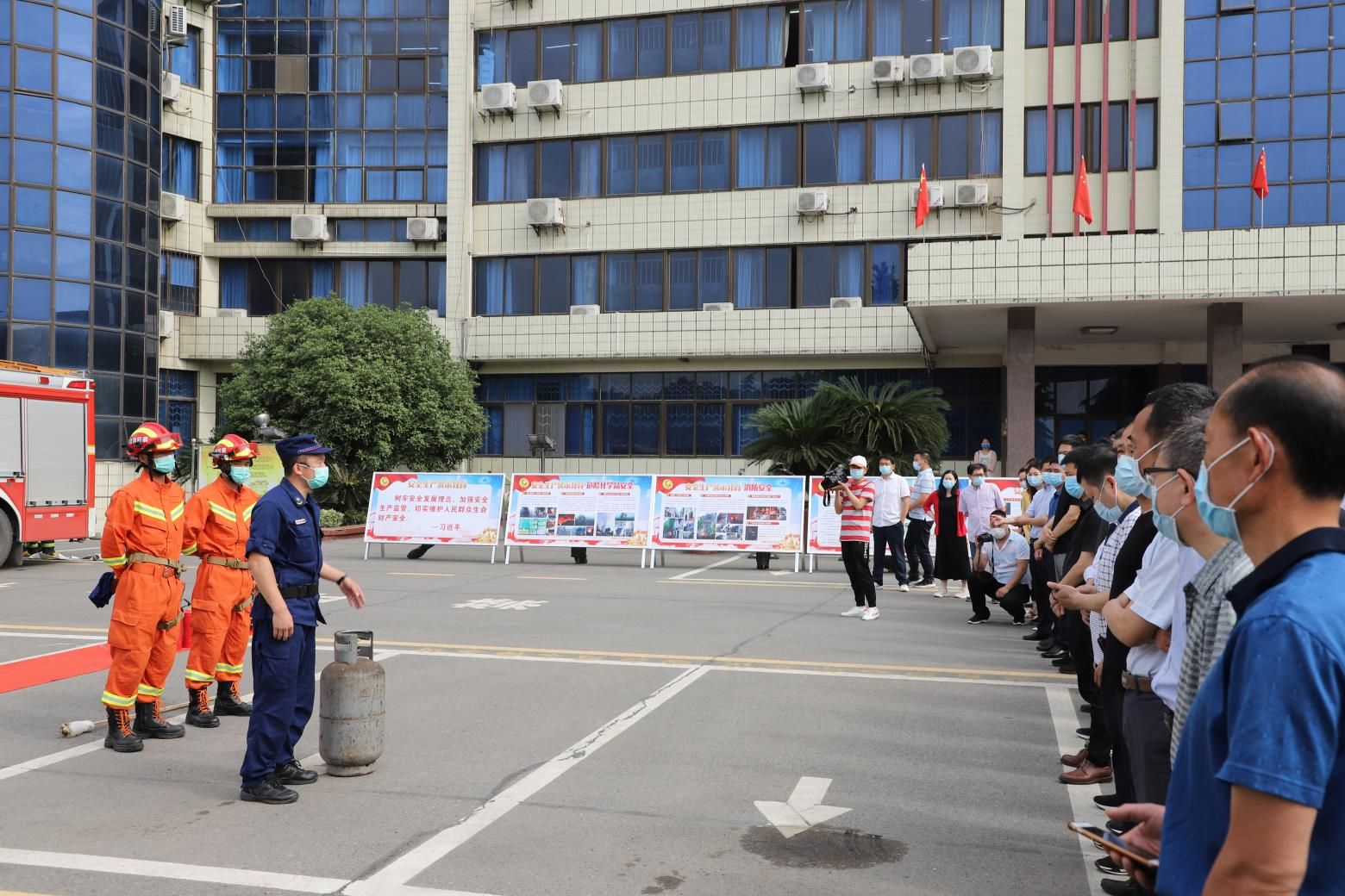 在理论培训中,宣传人员结合典型案例从火灾危害性、火灾预防、消防法律法规以及党员领导干部的消防安全管理职责等方面对全体人员进行了理论知识培训。在技能培训中,宣传人员详细讲解了灭火器等设施器材的操作方法、使用细节,并组织职工亲身体验了如何应对处置煤气罐着火,让现场参训人员受益匪浅。