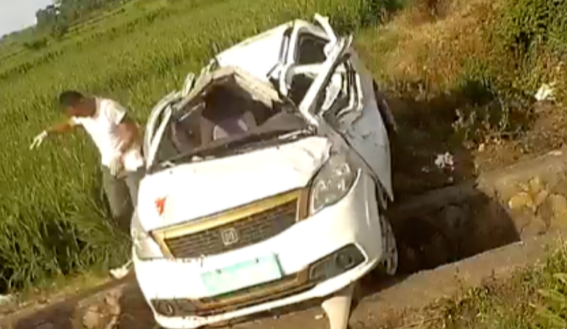近日,宜春丰城市711县道上,一辆白色小轿车翻滚到路边农田中。车体严重变形,车内有3名人员被困。