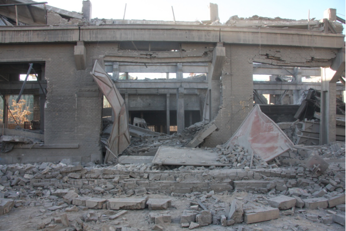 爆炸车间东跨屋顶塌落