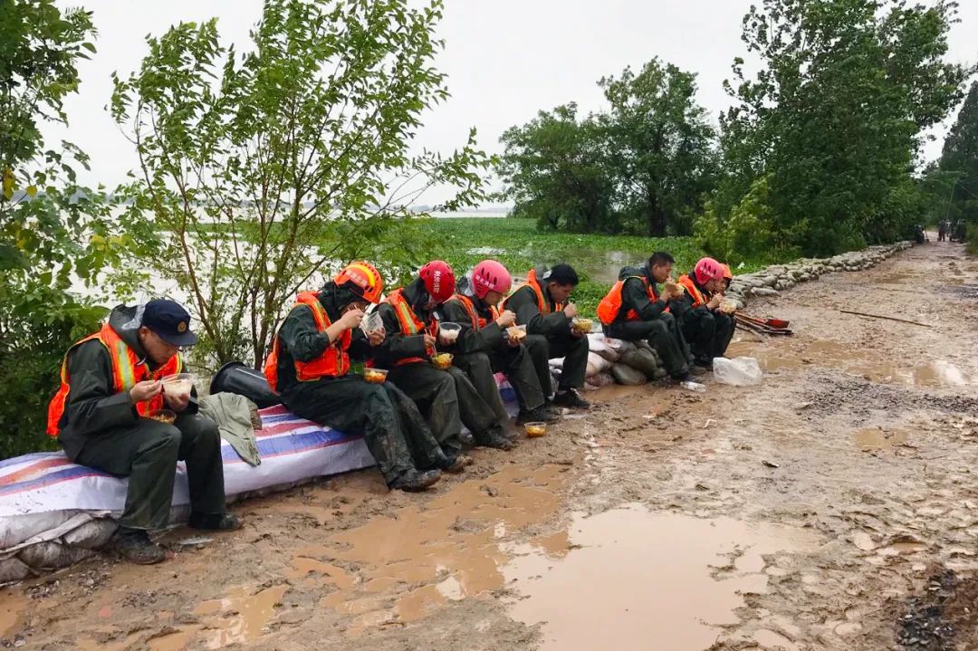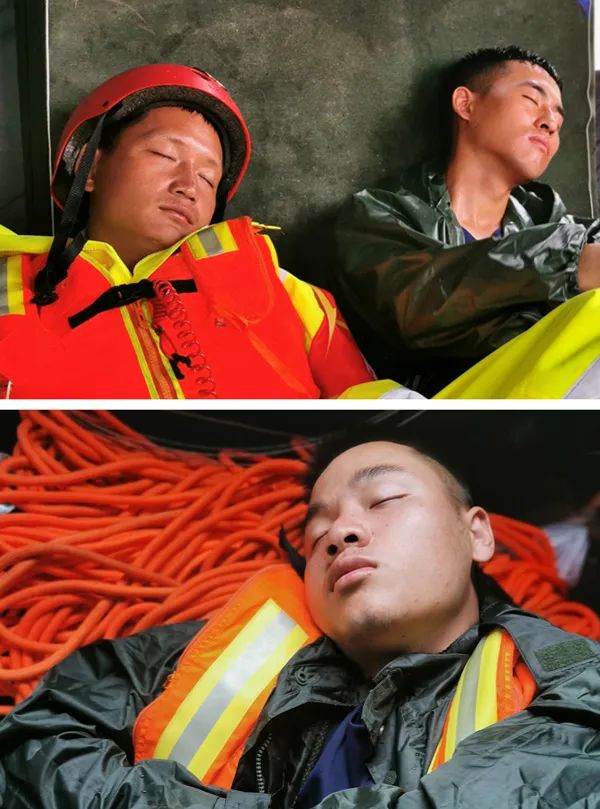 搜救行动不分昼夜,已持续了18天。抗洪的主战场,他们以地为床,困了就打个盹!