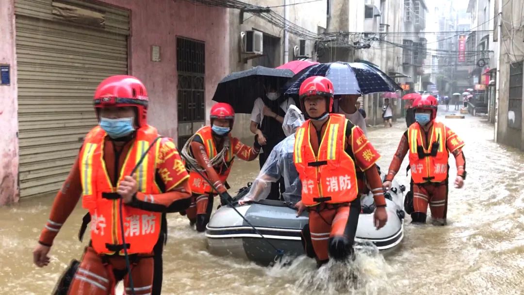 “我们家淹水了,快帮帮我的儿媳妇,她刚生产6天,受不得凉。” 消防员一边打伞一边扶住产妇,直到护送她到达安全区域。