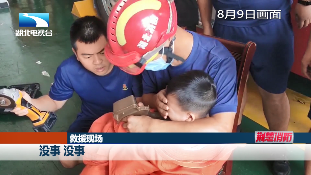 无独有偶,在荆门同样也发生一起儿童卡手的事故。8月9号上午9点,一名男孩因好奇,将手指放进了麻将机零部件的孔洞里面,动弹不得,家长立即将男孩带到了辖区的消防站。