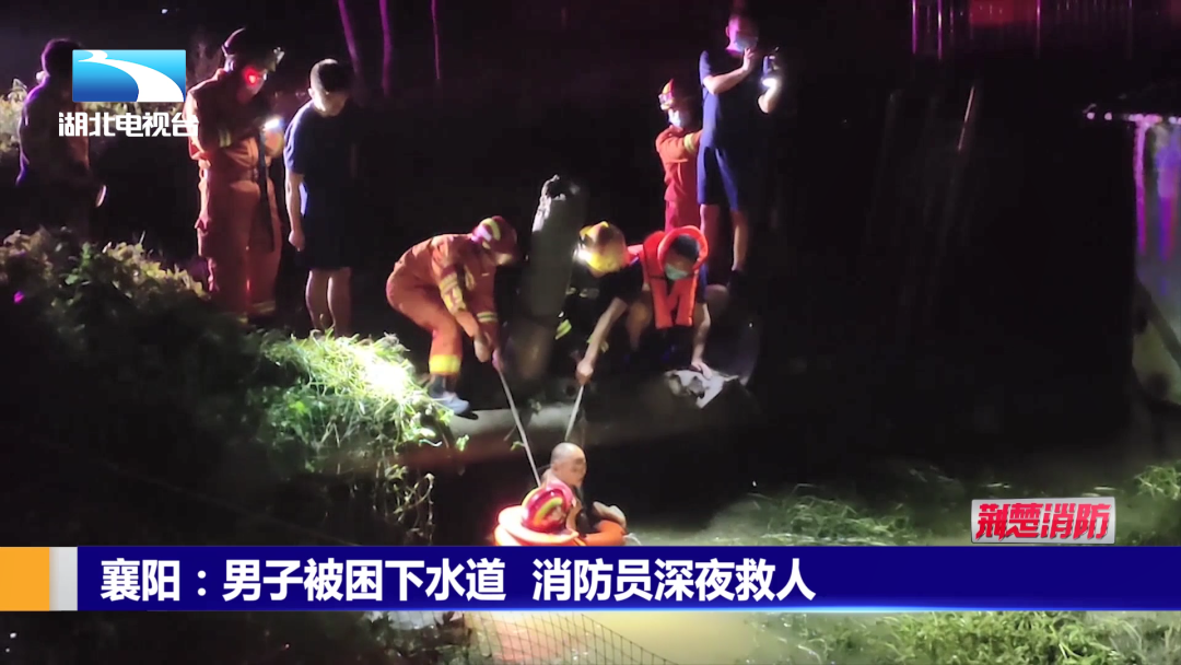 8月13号,襄阳多地出现暴雨。当晚9点40左右,樊城区太平店镇一名男子被困在了下水道。消防救援人员了解到,被困的男子为附近的住户,因杂草堵住排水管道,导致家里漫水。他出门清理时,脚被杂草缠绕,同时被排水管道水流吸住,无法脱困。消防救援人员先对被困人周边杂草进行清理,然后一名消防员,进入水下进行救援。