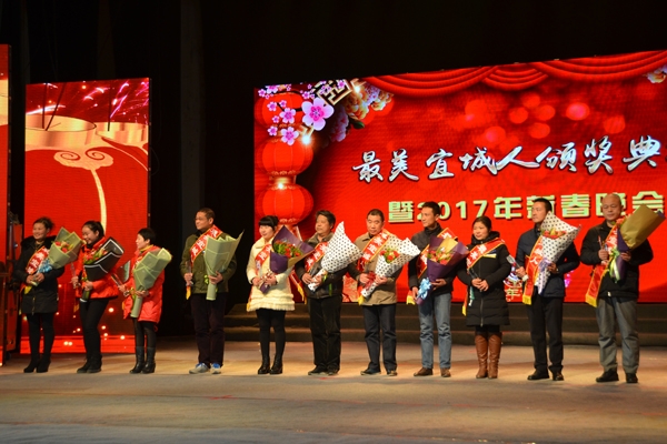 1月21日,宜城市在人民会堂隆重举办2016“最美宜城人”颁奖典礼暨2017新春晚会。姚慧等10人和宋德兰等10人分别荣获2016度“最美宜城人”称号 和“最美宜城人”提名奖。