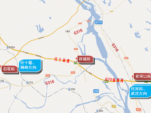 往河南、武汉、荆州方向:沿兰福线(316国道)向南行驶至石花收费站上高速,全程约17.6公里。