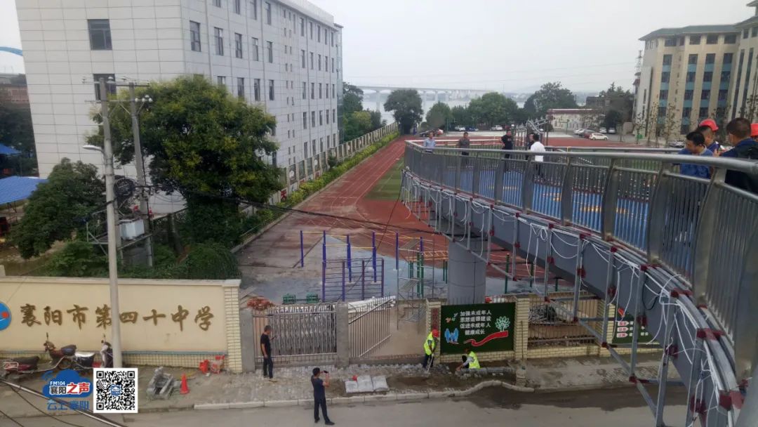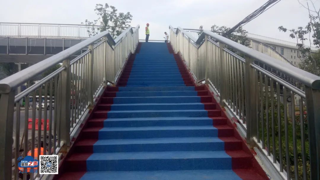 天桥进校园,方便又安全。9月1号,位于岘山路的襄阳市第四十中人行天桥正式启用。跟以往建设的人行天桥不同,这座天桥有一个梯道建在市四十中校园内,师生们可以直接从校园通过天桥过街。