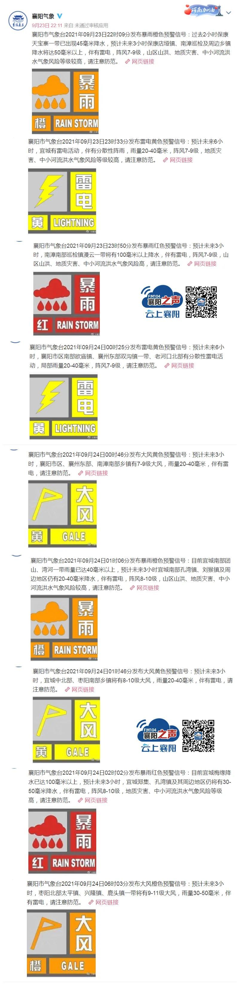 昨夜今晨,襄阳市气象台连续发布雷电、暴雨预警。