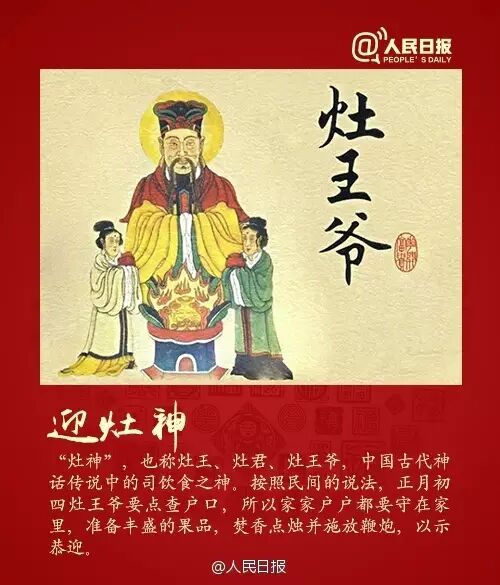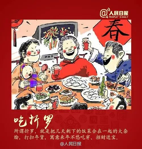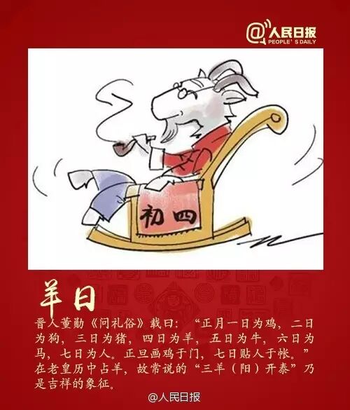 大年初四又称为“羊日”,是恭迎灶神回民间的日子;传说灶王爷这天要来查户口,所以不宜远出;家家户户要吃“折罗”——把几天剩下的饭菜合在一起的大杂烩;扔穷:室内掸尘,屋内扫地,垃圾堆到院中准备“扔穷”……