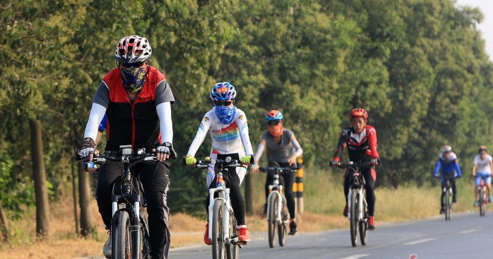 有着8年骑行经验的张栋是其中一个小分队的领队。“我们分队11人,有刚入门几个月的新手,需要领队指导和帮助。”完赛后,张栋告诉记者,按照他的正常速度,能在5个小时内完赛;但要照顾队员,最后全队在8小时内完赛。