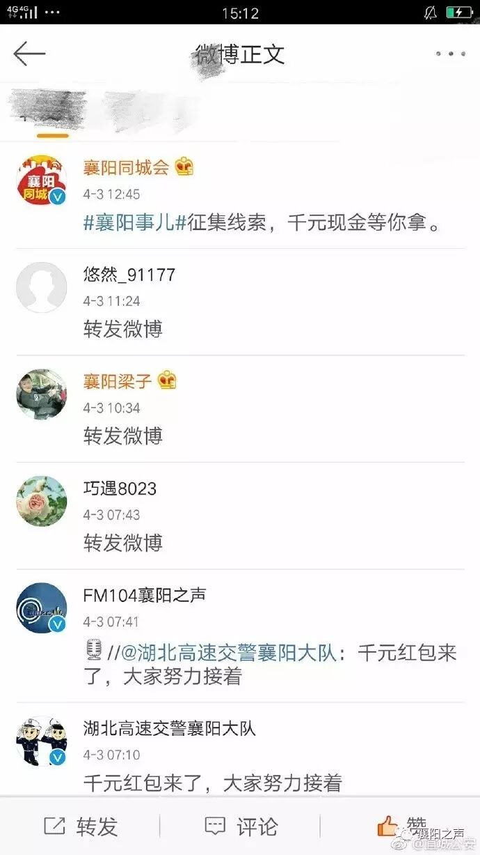 襄阳市公安局微信公众号发布今日头条,调动辖区微信微博矩阵连锁呼应,襄阳、宜城本地客户端也积极响应转发,引起网民强烈关注。