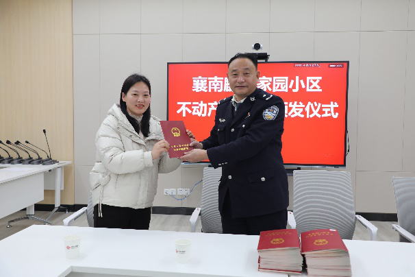 2024年1月31日,襄城区人民法院联合襄阳市不动产登记局举行襄南麒麟家园小区不动产权证书发放仪式。