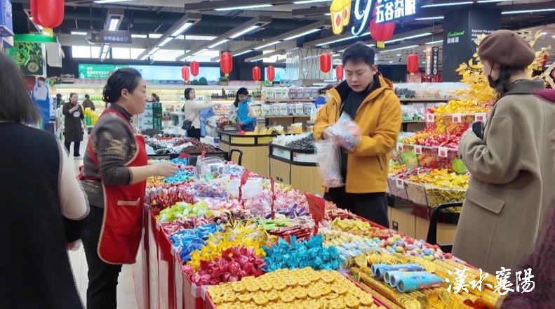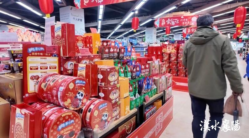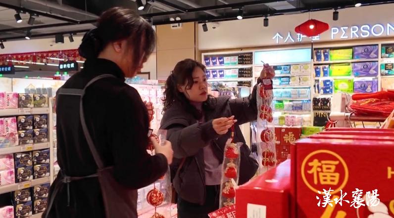 走进襄城区鼓楼好邻居超市,浓浓的年味儿扑面而来,货架上多了不少喜庆的礼盒产品。在超市一角,陈列着对联、挂饰等年节产品,许多顾客的购物车里,都增添了一抹红色。