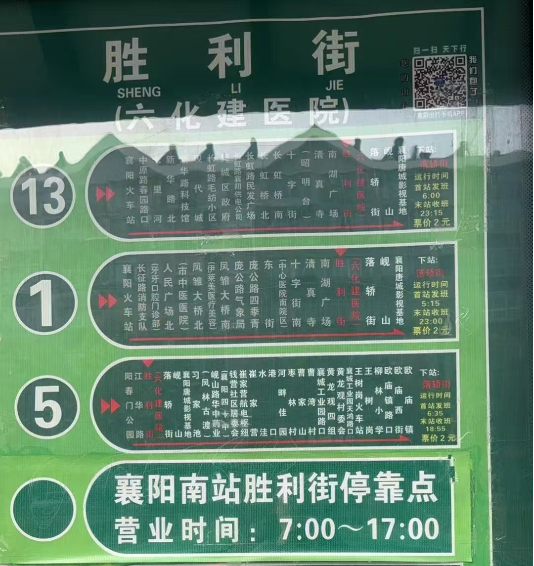 胜利街停靠点:发往宜城、钟祥、荆门、洪山等方向的客车停靠于此,方便大家按出行方向就近乘车。