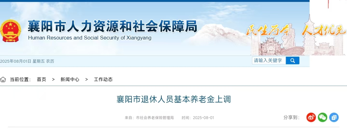 按照国家统一部署,经省政府同意并报人力资源社会保障部、财政部批准,近日,省人力资源社会保障厅、省财政厅印发《关于2025年调整全省退休人员基本养老金的通知》,从2025年1月1日起,为2024年底前已按规定办理退休手续并按月领取基本养老金的企业和机关事业单位退休人员提高基本养老金,总体调整水平为2024年退休人员月人均基本养老金的2%。