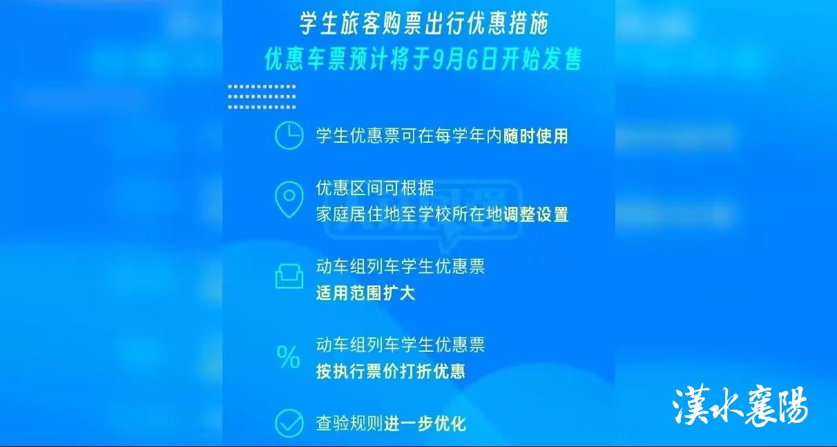 襄阳车站客运车间工作人员胡敏莉说:“由仅限二等座调整为包括二等座、一等座和动车组卧铺各席别,而普速旅客列车学生优惠票适用范围不变,仍为硬座、硬卧。”
