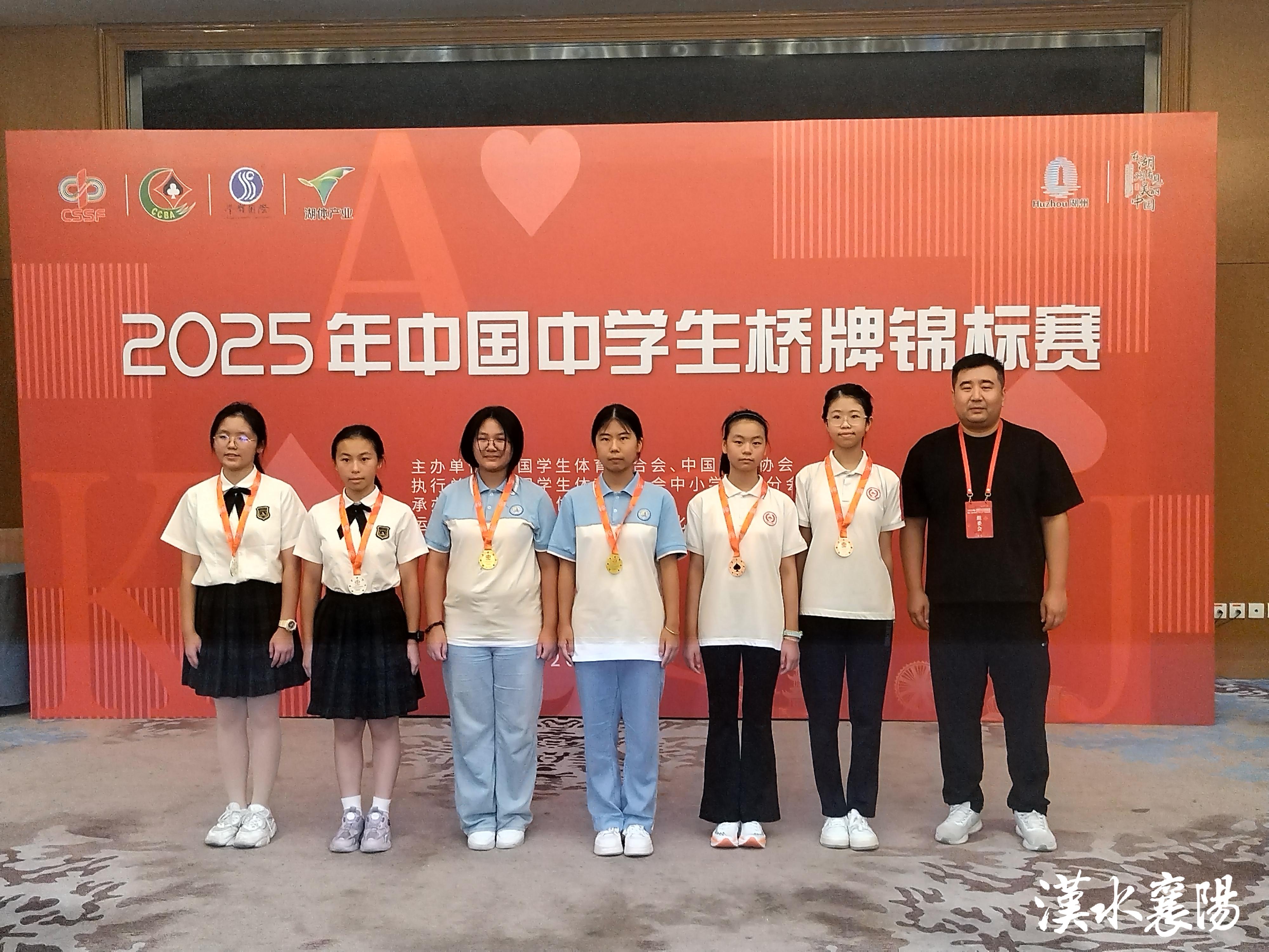 2025年中国中学生桥牌锦标赛由中国学生体育联合会、中国桥牌协会主办,中国学生体育联合会中小学桥牌分会执行,湖州市体育局承办,北京学体国际体育文化传播有限公司运营的国家级的中学生桥牌比赛。襄阳市第四十四中学自2014年开始参加中国中学生桥牌锦标赛,并于2015年夺得全国中学生桥牌锦标赛初中女子双人赛冠军,实现了湖北省自参加全国中学生桥牌锦标赛八年以来冠军零的突破,到2025年再次登顶,襄阳市第四十四中学桥牌队的十年征程,是一段从零的突破到湖北省内青少年桥牌团体赛十一连冠的辉煌历程。