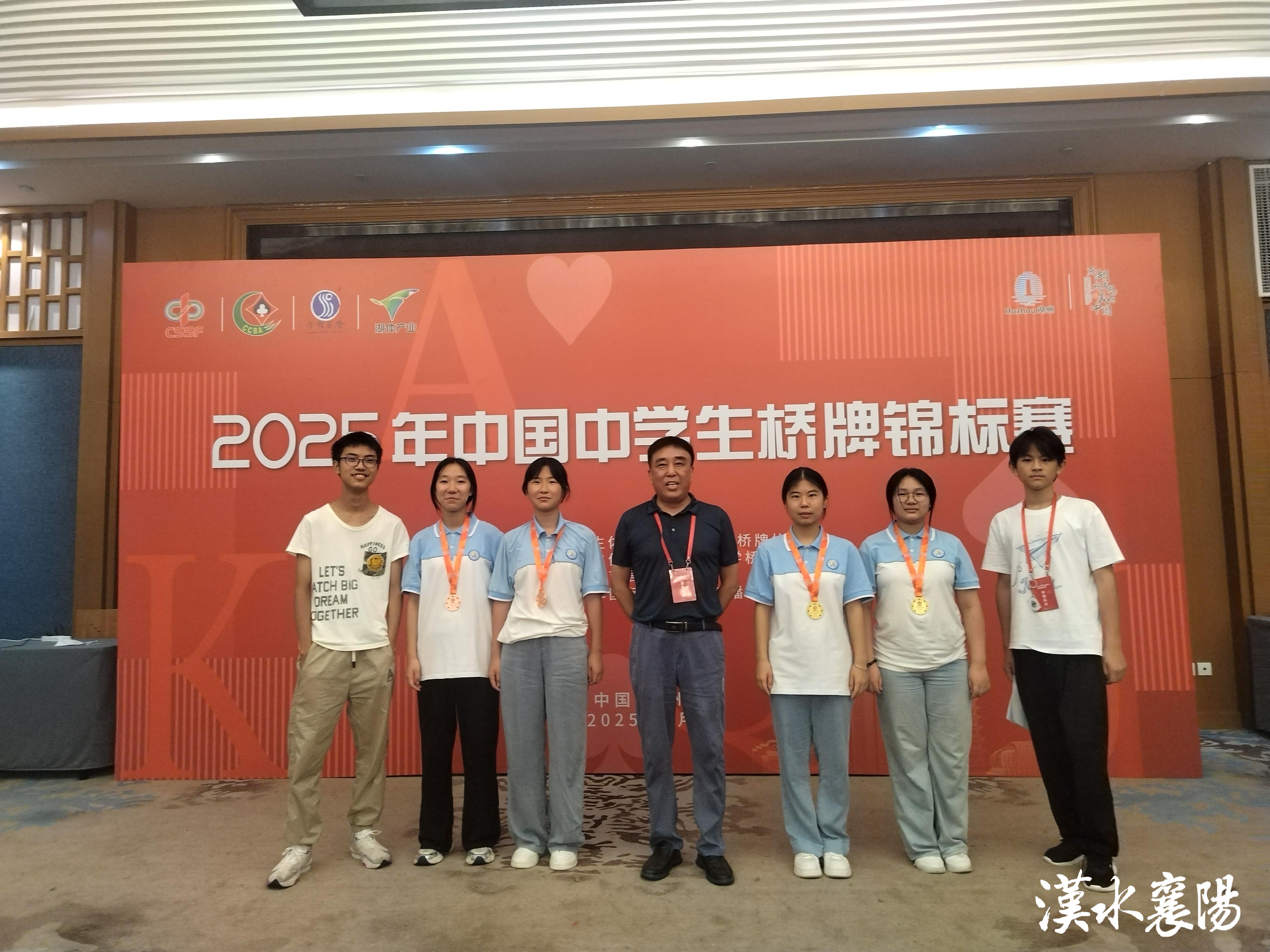 8月26日至29日,2025年中国中学生桥牌锦标赛在浙江省湖州市举办,中国中学生桥牌锦标赛吸引了来自全国各地的34所中学近300名选手参加,本次比赛共设6个组别,涵盖高中组公开团体赛、公开双人赛、女子双人赛以及初中组公开团体赛、公开双人赛、女子双人赛;襄阳市第四十四中学共派出了6名桥牌队员,参加了有23支队伍参赛的初中组公开团体赛、公开双人赛、女子双人赛等三个组别的比赛。