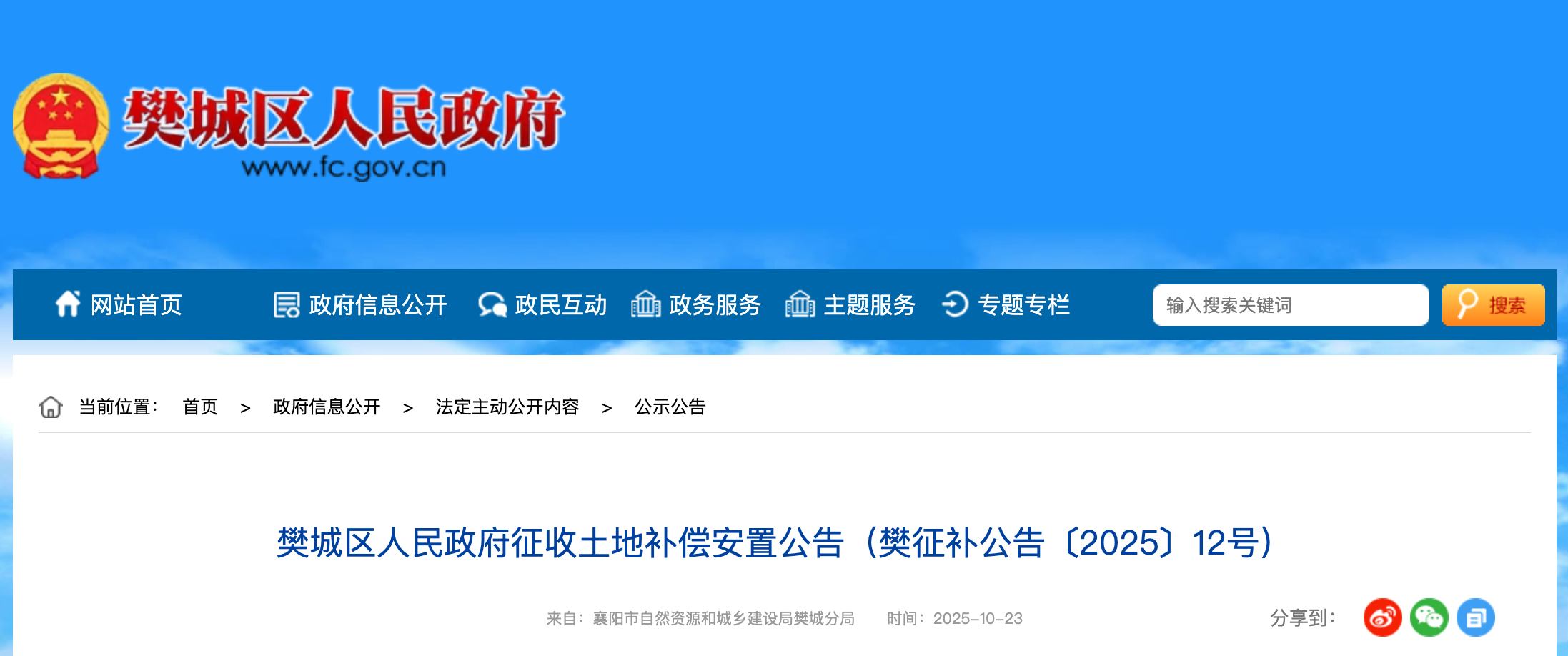 10月23日,樊城区人民政府网发布一则征收土地补偿安置公告。拟对王寨街道衡庄社区、柿铺街道王伙社区农民集体土地进行征收。