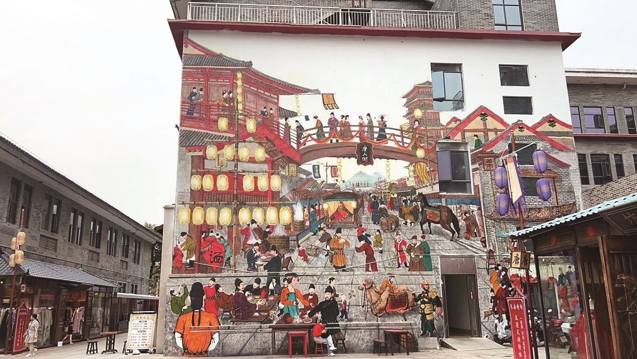 贾蒙绘制的唐文化壁画墙 受访者提供