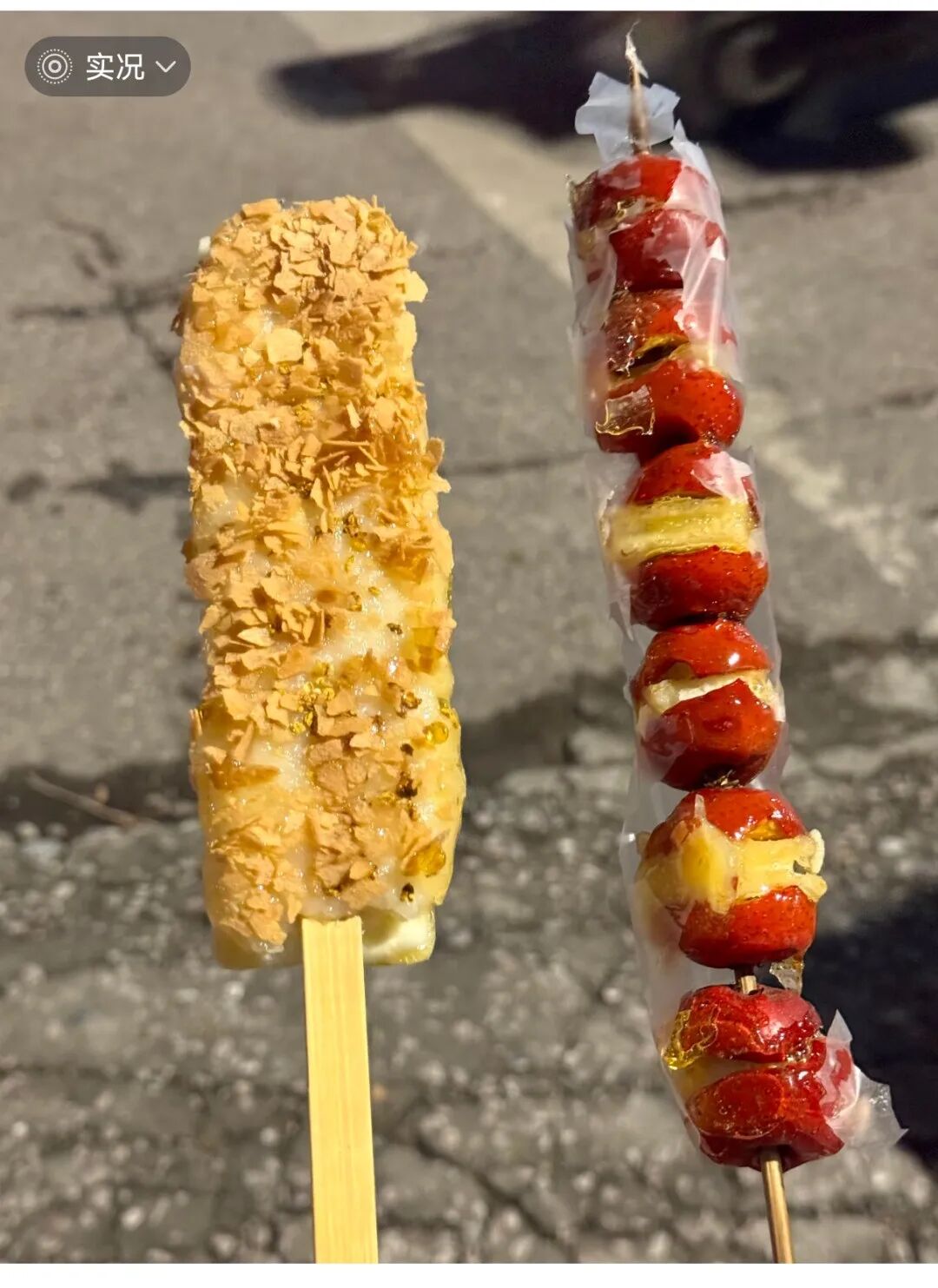襄阳也出现了奶皮子糖葫芦,价格在15元到30元之间。