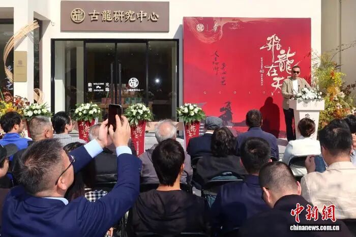 ■11月13日,古龙长子郑小龙在古龙研究中心揭牌仪式上致辞。当日,“纪念古龙逝世四十周年系列活动”在浙江杭州启动,现场揭牌了古龙研究中心,并进行古龙武侠IP永久落户杭州的签约仪式。