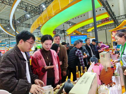 今年,襄阳共组织94家优质农产品企业、1000多种产品参展。地道"土特产"纷纷亮相展会,观众逛展会淘"宝贝",现场一片火热氛围。