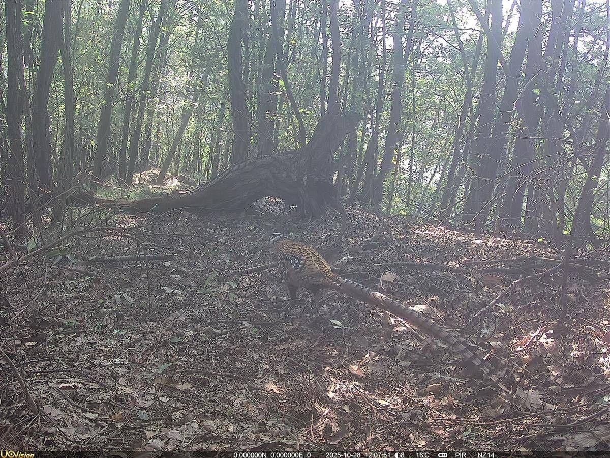 武汉格桑花生物多样性调查团队陆生脊椎动物助理工程师李辉介绍,白冠长尾雉和小灵猫分别现身城关镇田家营村和肖堰镇孙家湾村的山林监测点,这两个物种早在2008年已在漳河源保护区发现,此次再次拍到,不仅是南漳县森林生态系统健康、生物多样性丰富的有力证明,也反映了当地在生态保护和栖息地修复方面所付出的努力已初见成效。
